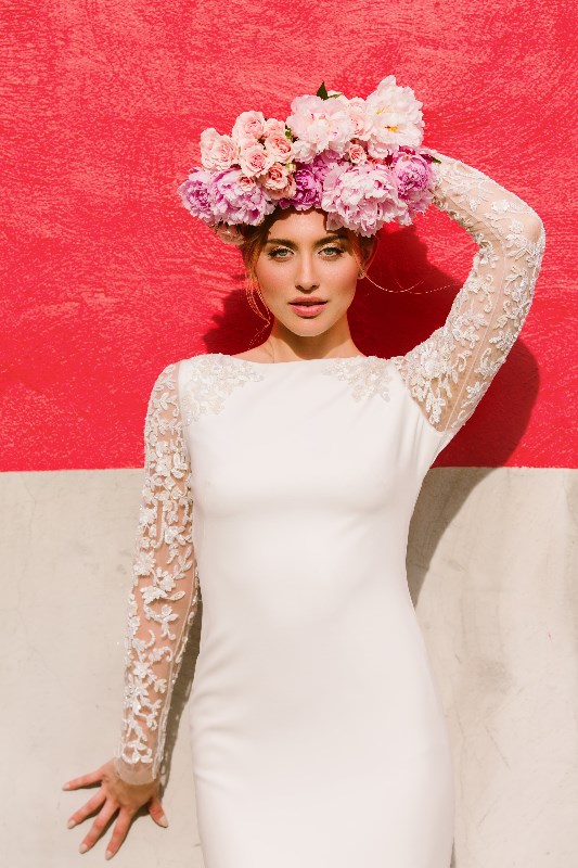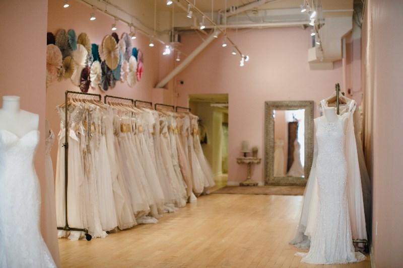 Our shopping process starts on our website. Clients create a profile and browse the exact gowns in our store through our dress portal, allowing them to select a wishlist of their must try-on gowns. We are appointment only and take all bookings on our website. At the appointment, our stylists work one on one with the client for a 90 minute appointment, assisting them in trying on gowns and envisioning their full bridal look to find the one.
