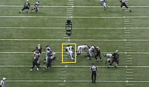 After the play-fake, Bryce Brown went out into his route, and there were zero Saints defenders nearby. If Vick’s able to get him the ball, it’s a big play. Maybe even a touchdown if Brown makes a man miss. But instead, Vick had pressure in his face, tried to scramble and took the sack.