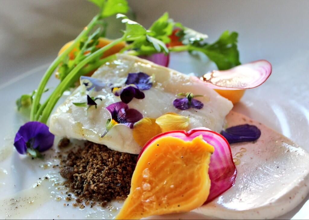 - Chef Jonathan Adams of Rival Bros. Coffee made this beautiful roasted halibut with spiced yogurt, coffee cardamom soil, pickled beets, and edible flowers.