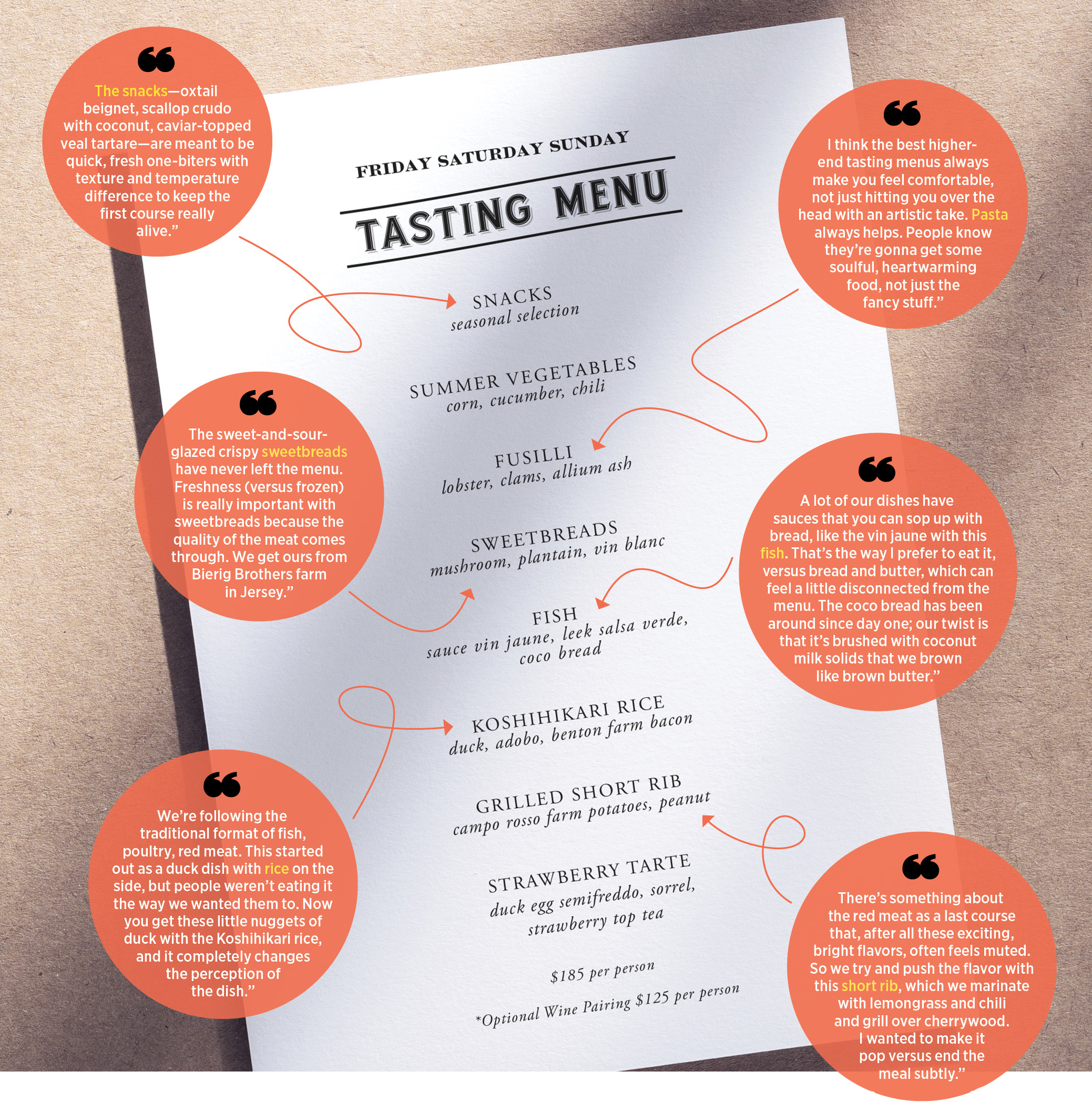 “When you have to pack a menu with 25 different items, you’re going to have some duds,” he says. “Tasting menus provide an opportunity for chefs to showcase and curate their best.” They also offer us a look inside a chef’s brain: how they think about food, flavors, flow. Great tastings not only excel at that trifecta, but offer moments of delight. A little levity. And also, I would argue, brevity.