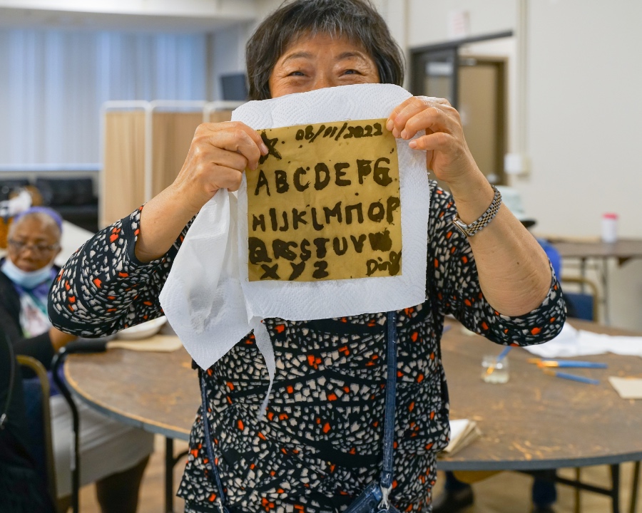 When I speak with Steele a few days after the event, she tells me about a favorite piece she created through the program: a zine about a time when she was standing in the ocean and the waves kept knocking her down. Her grandson was there to help her up. It reminded her of the importance of her family and how they show her their love and support.