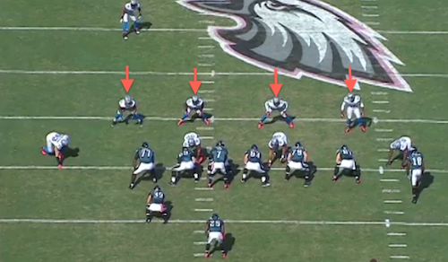 It’s not every week, and it’s not every play, but there are absolutely times when defenses gear up to stop the Eagles’ run. Take a look at this image from last week’s game:
