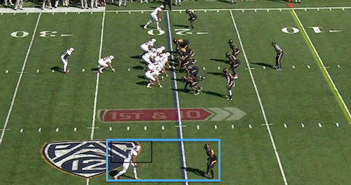 Unfortunately, the coaches’ tape is not available to the media or the public. So instead, we’ll use the TV footage from the great cut-ups that the fine folks of DraftBreakdown.com put together.