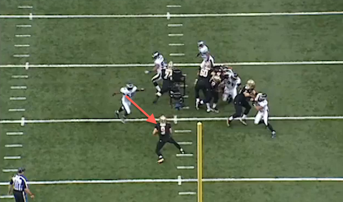 Brees had about 3.9 seconds to find his receiver. That’s way too much time, especially in a key third-and-long situation like this.