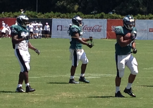 12:38 – The Eagles are in pads for the second consecutive day. As Chip Kelly explained, he’s trying to walk the fine line between making camp physical and not injuring his players. For that reason, there will be no tackling to the ground until the preseason games.