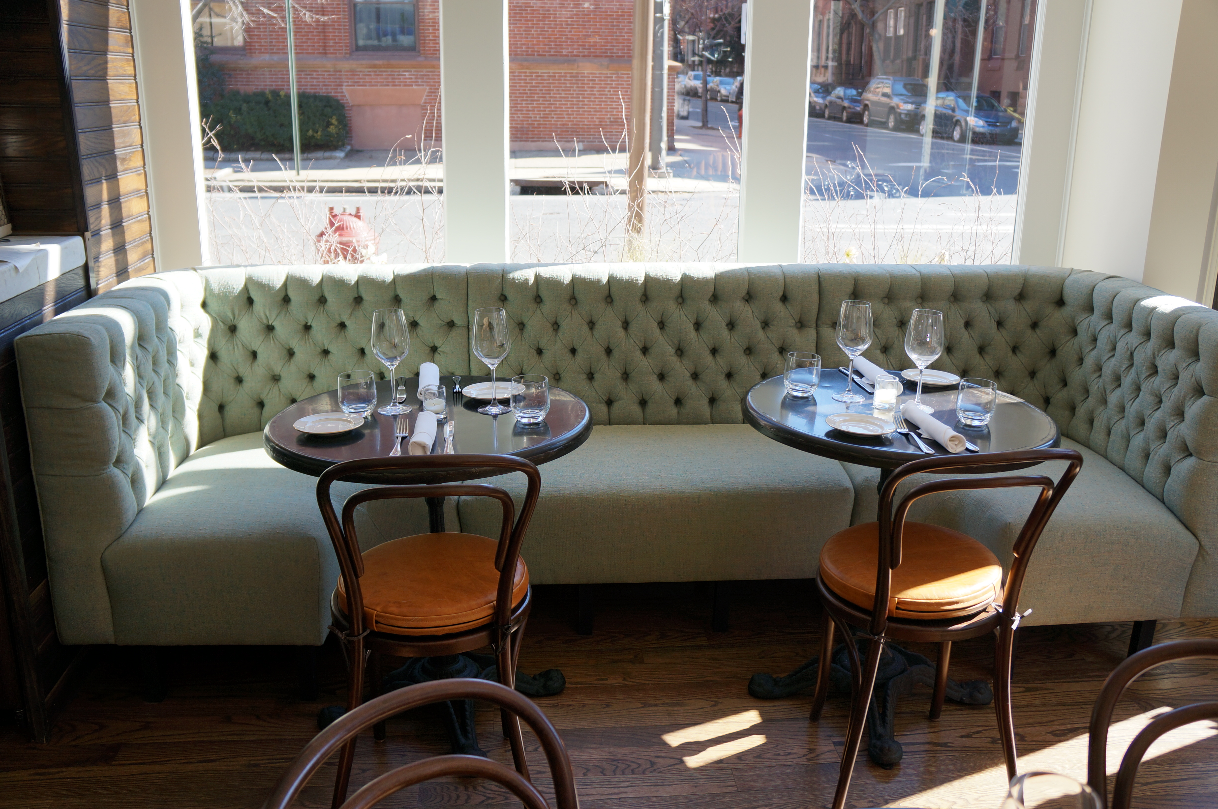 The thirty-two seat restaurant features an open kitchen, subway tiled walls, handsome leather banquette and welcoming sofa. A four-seat bar faces chef Robert Marzinsky’s open kitchen. Marzinsky has been the chef de cuisine at P&K’s other fine dining sibling, Diving Horse in Avalon, NJ. Marzinsky was also on the opening staff of Stateside and has worked at Pub & Kitchen. Fitler Dining Room’s menu will feature an American bistro concept balanced between land and sea. Appetizers run from $8 to $14 with entrees coming in between $18 and $26.