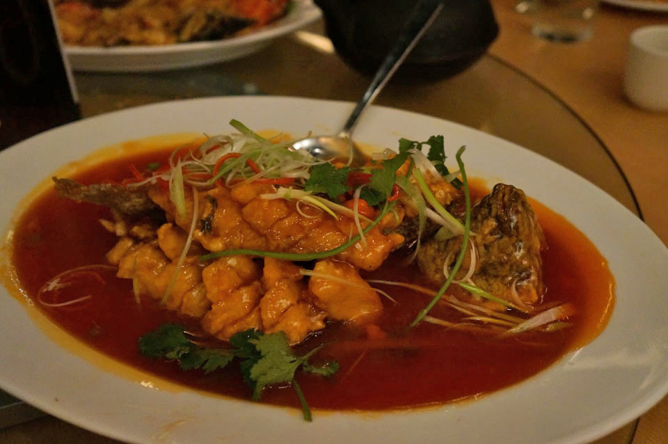 - Flying Fish was prepared Hong Kong style in a sweet sauce.