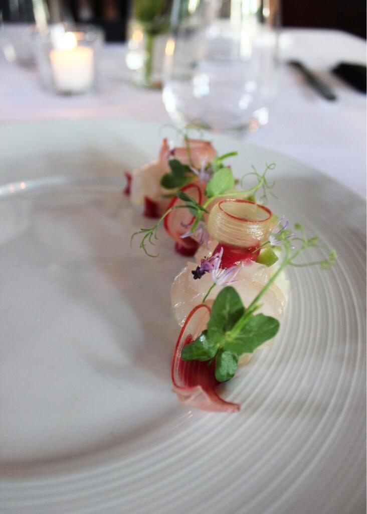 - Chef Nicholas Elmi made the first course, a triggerfirsh crudo with rhubarb and kohlrabi.