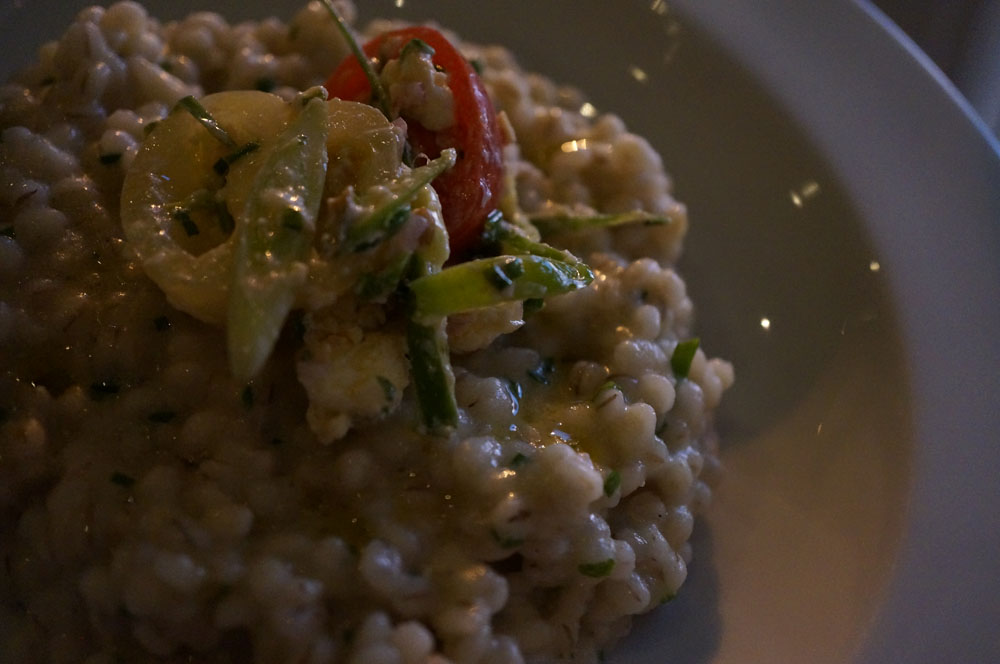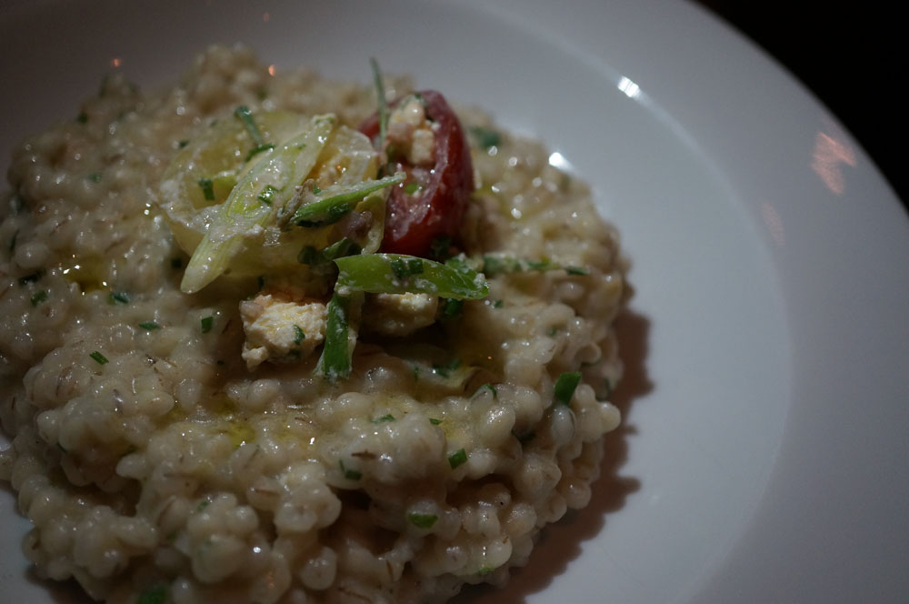 Even though Team R2L wasn’t used to cooking with it, they used it beautifully in a delightful pearl barley risotto, topped with an heirloom tomato salad and a labneh vinaigrette.