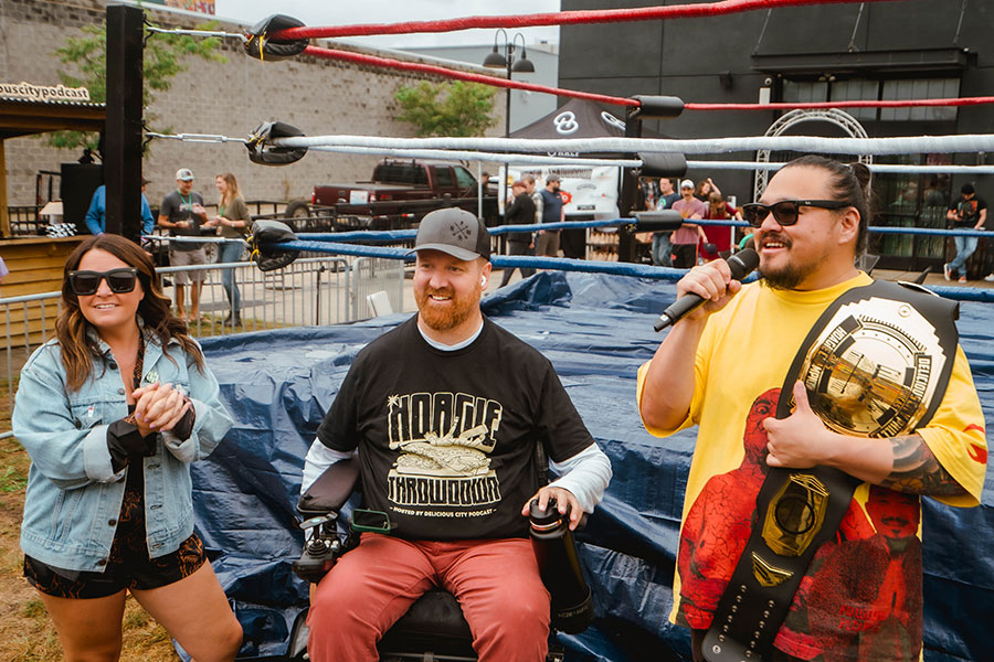 And how do you end up with a hoagie party that is also a pro wrestling lineup? When the Delicious City team was first brainstorming the event, producer Sara Parker came up with the name “Sammy Smackdown.” And while a “sammy” is not a hoagie, “smackdown” naturally made them think of wrestling. And Kulp already knew Pro Wrestling Entertainment’s Roman Fiorella and Jason Abrams.