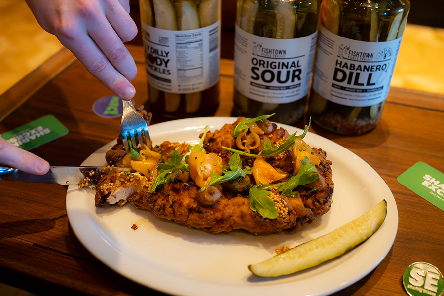 Now in its fifth consecutive year, the Feast of the Seven Pickles is returning with a seven-course, pickle-centric menu (and “pickle sundae bar”) at Percy in Fishtown on Tuesday, December 16th. The menu will be a collaboration between Percy’s kitchen and FPP co-owner, Mike Sicinski. They’re calling it “The Diner Edition” and the menu will feature starter courses of deviled eggs and latkes with smoked fish and pickle slaw (which they’re calling “a nod to Chanukah, as the event falls on the third night of the holiday”), followed by pumpkin soup with winter squash kimchi, a corned pork belly Reuben with sweet onion pickle glaze, fermented red cabbage kraut and rye bread gremolata, then antipasto with Fishtown Pickle Dip, a pickle-brined chicken schnitzel, and then, for dessert, that aforementioned “Pickle Sundae Bar” set up in Percy’s “Sound Lounge” featuring fermented honey wet walnuts, tea-pickled golden raisins, hot fudge, whipped sour cream, fermented fruit, and more.