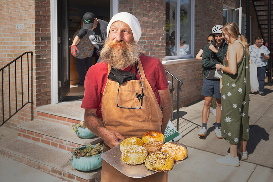Philip Korshak outside of Korshak bagels. / Photograph by Colin Lenton