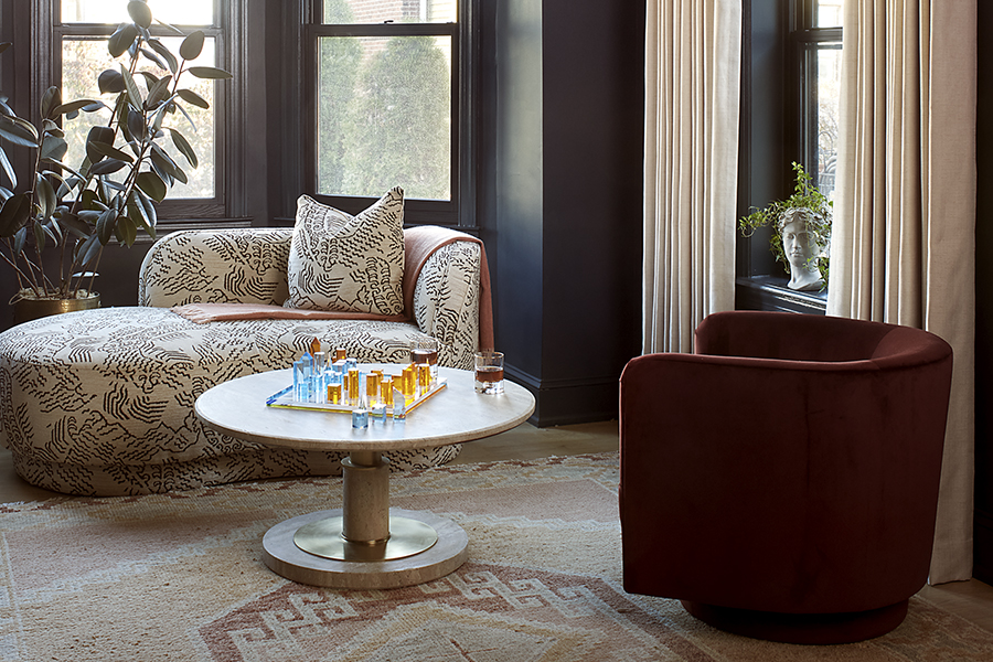 A Custom Chaise and Dramatic Colors Define This East Passyunk Home Office