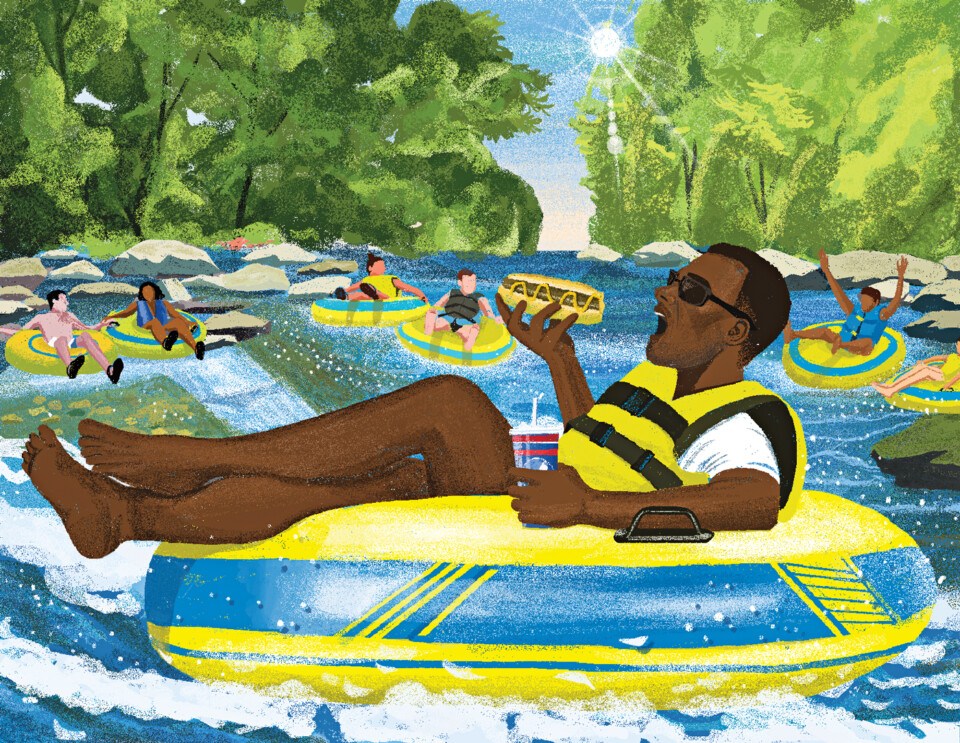 Book an excursion via Delaware River Tubing for free lunch from the Famous River Hot Dog Man. / Illustration by Teddy Kang