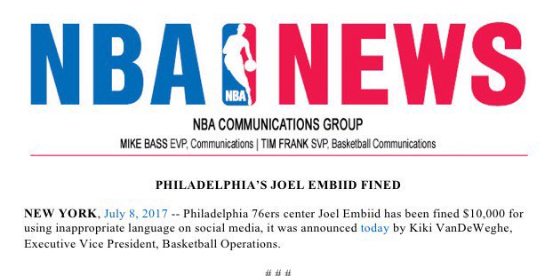 — Joel Embiid (@JoelEmbiid) June 22, 2017