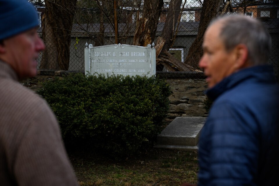 The grave markers in the deBenneville cemetery are oddly distributed. At the east end of the property lie most of the deBenneville stones, gathered in small groupings, as a clan might if they stood together informally, leaning this way and that. It reminded me of how families depend on one another. George deBenneville’s is a large, flat slab, like a tablet, flush with the ground. The middle of the cemetery is open grassy space, and to the west lie two graves that differ from the others. They are the resting places of General James Tanner Agnew, one of only four British Revolutionary War generals buried on American soil, and Lieutenant Colonel John Bird, both felled in the Battle of Germantown on October 4, 1777. The two were first interred in Germantown’s Lower Burying Ground, but a year later, British General Sir William Howe, fearing the desecration of their graves after the British withdrew from Philadelphia, secured a secret agreement with deBenneville to move the bodies to the family burial ground. It was known that deBenneville cared for the wounded on both sides, true to his belief about universal love and forgiveness. “Deeds, not creeds,” he had often preached.