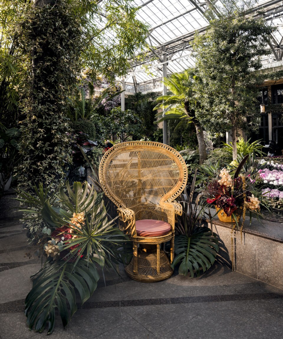 A photo moment in the main conservatory’s Court of Bamboo, featuring the Vintage Manila Peacock Chair