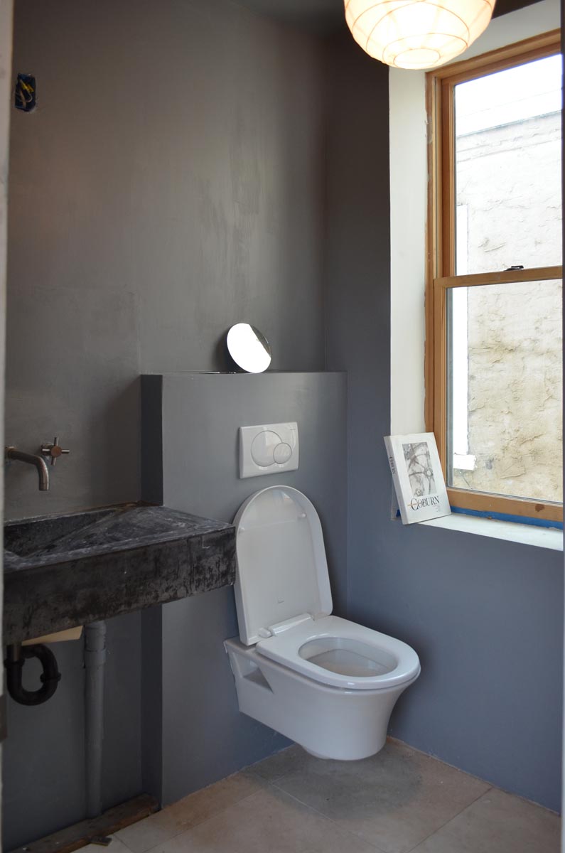 “I had friends who made the concrete counter and sink. I got maple hardwood flooring from the gym at the old Lincoln High School. I put in a concealed tank toilet, even though it’s a lot more work installing it.” He adds, “I started this process thinking I would enjoy construction, but I didn’t really.”