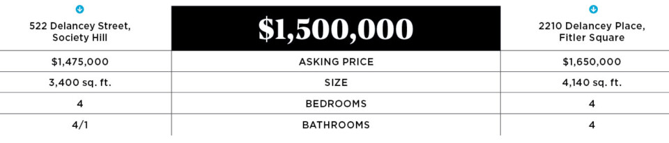 Whether it’s located amid the early-American charm of Society Hill or in tony Fitler Square, a townhouse on Delancey Street is a prized possession. Here’s what $1.5 million will get you on the street.